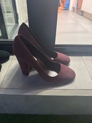 Preciosos zapatos de tacón alto. Son de color rojo burdeos oscuro, un tono elegante y sofisticado. Ideales para una ocasión especial. Tacón alto y grueso, cómodo y estable. Los vendo porque solo me los puse para un evento.