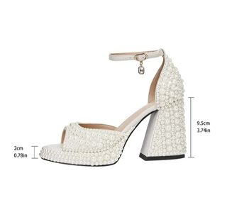 Elegantes sandalias de novia con un diseño delicado y adornos brillantes. - Tira ajustable en el tobillo con un charm colgante. - Acabado perlado en toda la sandalia. - Tacón grueso y plataforma para mayor comodidad. Tacón bloque Cuadrado Grueso, Zapatos Nupciales Abiertos con Hebilla Ajustable, Cobertura Sintética y Suela de Goma para Novias, Eventos Nocturnos y Ocasiones Especiales, Zapatos Elegantes para la Noche