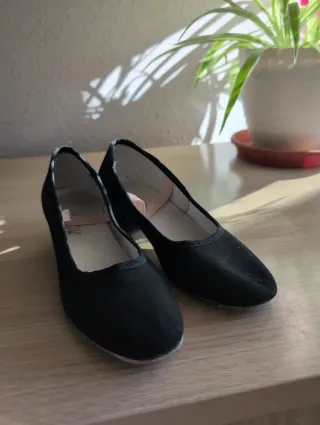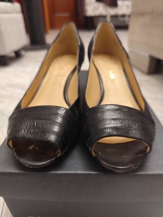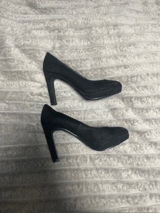 Estos zapatos de tacón son un imprescindible en tus básicos. De piel ante negra, tacón 9cm. Están practicamente nuevos, sólo puestos en interior. T36 (horma estrecha, talla pequeño)