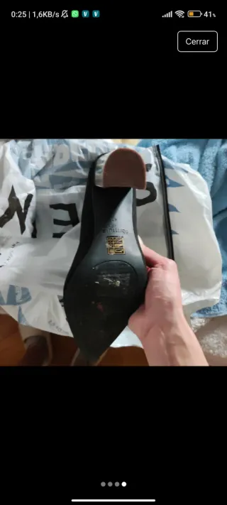 Elegantes zapatos de tacón con un acabado brillante que combina negro y plateado. Perfectos para añadir un toque de glamour a cualquier atuendo. Talla 40 - Diseño de punta fina. - Tacón de aguja. - Acabado con purpurina.