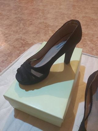 zapatos de tacón con plataforma, negros de la talla 37, usados una sola vez, para fiesta o ceremonia.