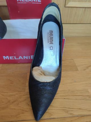 Elegantes zapatos cerrados de la marca Melanie. - Diseño clásico y sofisticado. - Acabado en color negro. - Talla 37.