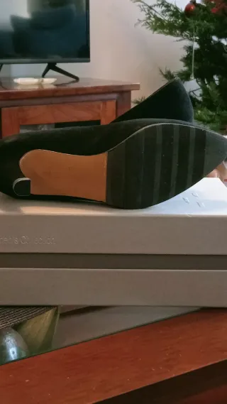 zapatos de un solo uso suela y tacón impecable. negro y algo de verde oscuro.Urge liquidar lo que tengo en mi cuenta.