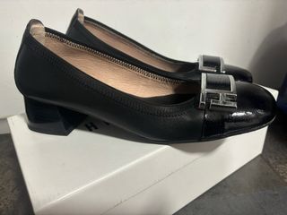Elegantes zapatos de la marca Hispanitas en color negro. - Diseño con detalle de hebilla metálica. - Acabado brillante en la puntera. - Suela con tecnología Triflow y Gelsystem. Me costaron 119,90€