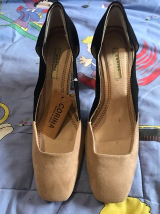 Preciosos zapatos de tacón de la marca Corina. Son de color negro y tienen un diseño elegante y sofisticado. Perfecto estado, solo 2 veces puestos. - Tacón fino. - Punta estrecha. - Material: tejido tipo ante.