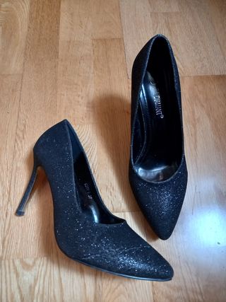 Zapatos negros y plateados maripaz nuevos.talla.37