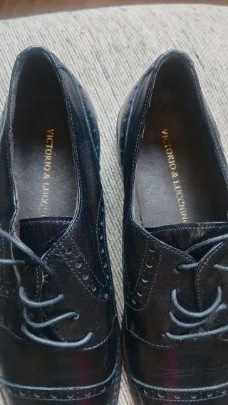 Elegantes zapatos de vestir de la marca Victorio & Lucchino. - Diseño clásico con cordones. -piel exterior e interior - Detalle de picado en puntera y laterales. - Acabado brillante.