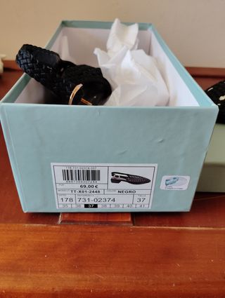 Preciosos zapatos de piel, negros y elegantes. Son de la talla 37 y están sin estrenar. - Diseño entrelazado. - Tacón bajo.