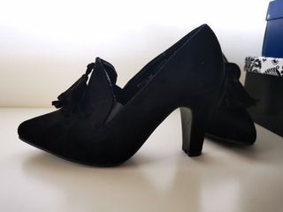 Zapatos de pie de melocotón. Zapatos negros talla 37. Zapatos azules talla 36. Se venden por falta de uso. Se venden por separados.