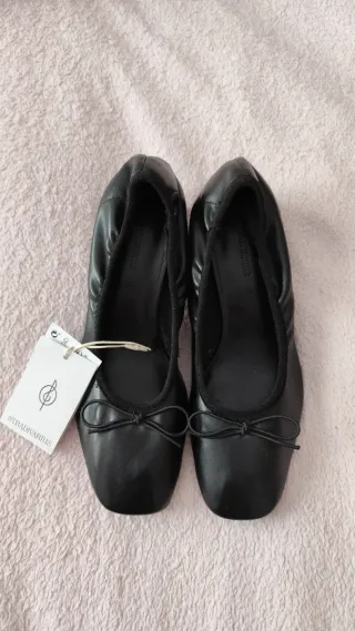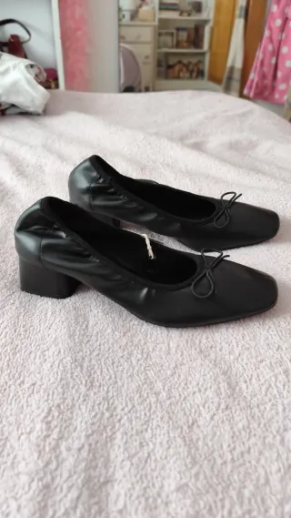 Envío y entrega en mano disponible. Completamente nuevas. Tallan un 36. Elegantes bailarinas de tacón con un detalle de lazo. - Tacón cuadrado. - Diseño fruncido. - Acabado mate.