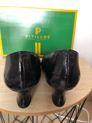 Zapatos de tacón medio de charol negro Marca Pitillos hechos en españa número 37 El tacón mide 8 cm medido por detrás La marca Pitillos dice Térmicos y súperabsorbentes nuestros forros y plantillas transpirables absorben el sudor evitaron la aparición de malos olores además de proporcionarle una agradable sensación de confort y bienestar.