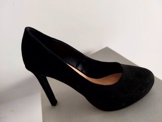 Se vende zapatos de tacón, marca Stradivarius, nº 39, 12 cm de tacón, plataforma 2,05 cm, material ante, en buen estado, solo se han usado dos veces. No envío con Seur.