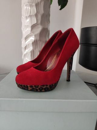 zapatos de tacon rojo de piel , muy bonitos ,puestos una hora , me queda muy justo son un 37