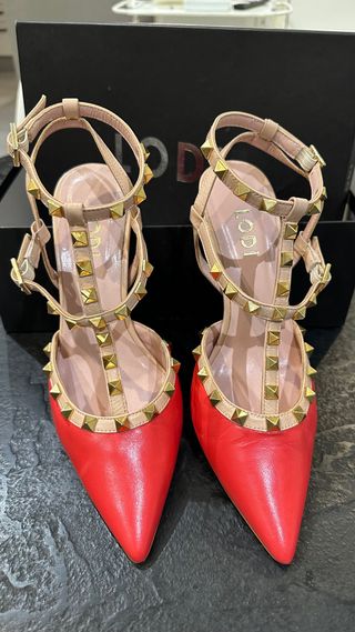 Zapatos de tacón Max Mara rojos con detalle dorado