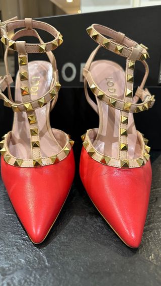 Elegantes zapatos de tacón en color rojo. - Material exterior de piel. - Interior con plantilla de gel para mayor confort. - Diseño clásico y versátil.