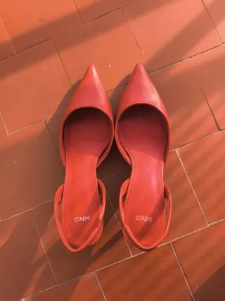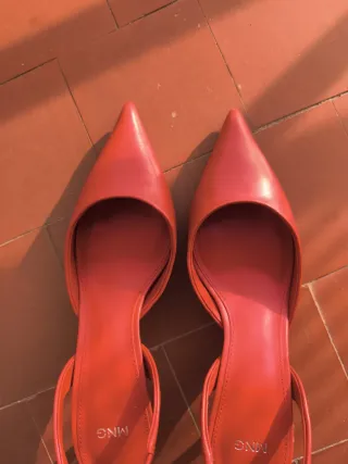 Elegantes zapatos de tacón Uterqüe en color rojo. talla 36. solo pago en Bizum entrega en persona. no pago envíos y no me desplazo. Recogida en calle Pastora Imperio 7 - Diseño slingback. - Punta afilada. - Tacón fino.