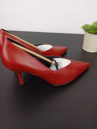 Elegantes zapatos de tacón Kiabi en color rojo. Perfectos para añadir un toque de color a cualquier atuendo. - Diseño de punta fina. - Tacón de aguja. (7cm)