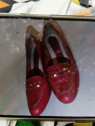 Zapato de señora en rojo un pequeño cuña de el corte inglés número 41 con poco uso de piel