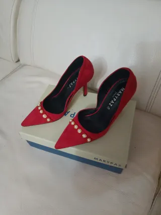 Preciosos zapatos de tacón de la marca MARYPAZ, talla 36. Son de color rojo y tienen un diseño elegante. Están completamente nuevos. - Tacón alto. - Diseño de tiras cruzadas. - Hebilla de cierre.