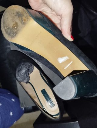 Zapato de Zara verde oscuro talla 37 tacon de 7 cm. Es de textura aterciopelada fina. Estan perfectos. Un solo uso. Tacon cuadrado muy moderno y elegante.