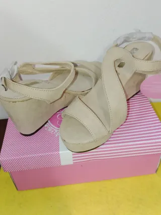 Zapatos Peep Toe Suela Madera Talla 39