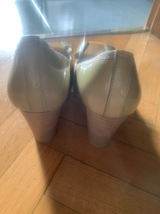 Elegantes zapatos tacon en ante fucsia; verde salon de charol; mocasin beige de zara; deportiva talla 42( talla pequeña)
