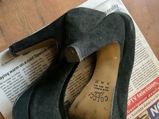 Elegantes zapatos de tacón con diseño destalonado. - Material exterior de ante. - Punta fina. - Tira ajustable en el tobillo. - Están sin estrenar. Talla 40 pero calzan justos. Si calzas un 39 también te pueden servir ¡¡El precio no es negociable!!