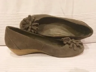 zapatos número 36, cuña, ante con detalle en la punta. - Material: Ante - Color: Verde - Adorno floral con tachuelas