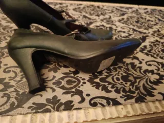Elegantes zapatos de salón en color verde, perfectos para cualquier ocasión. Solo se han usado una vez, están como nuevos. - Tacón cómodo y estable. - Diseño clásico y versátil.