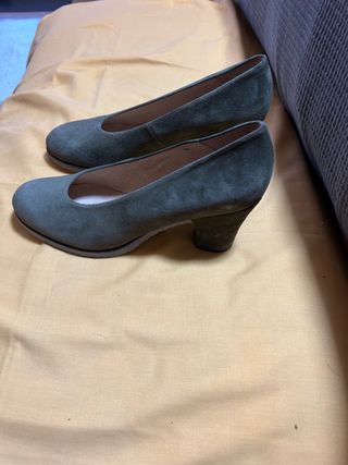 Zapatos salón serraje número 39,puestos una vez en ceremonia ,verde oscuro