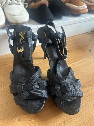 Sandalias de tacón Yves Saint Laurent, talla 39, color negro, nunca usadas, están prácticamente nuevas, hago envíos o trato en persona. Palabras clave: Sandalias, tacones, tacón, Yves Saint Laurent, verano, invierno, primavera, regalo, navidad, elegante, cena, boda, vestido, zapatos, clase.