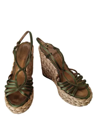 Cuñas de esparto Saint Laurent vintage. Muy bonitas y versátiles, combinan la comodidad y el estilo. Las tiras son de satén y piel, y el tacón es de paja. Suela de cuero. Talla 38, pero también puede ir bien para 38.5 Made in Spain, patria de los excelentes artesanos expertos de este tipo de zapatos. Usadas pero en buen estado, son Vintage. La paja tiene algunos desperfectos, pero en general se ven estupendas. Altura tacón: 13 cm Altura plataforma delantera: 3.8 cm No tengo caja ni dustbag. Sandalias Yves Saint Laurent Tacones Saint Laurent Cuñas Saint Laurent Zeppe Saint Laurent
