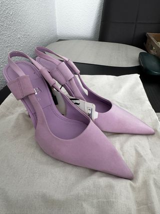 Elegantes zapatos de tacón de Zara con un detalle de lazo. - Diseño slingback. - Punta fina. - Tacón gordo