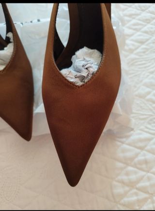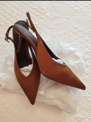 Elegantes zapatos de tacón de Zara. - Diseño de punta afilada. - Corte lateral. - Material de ante.