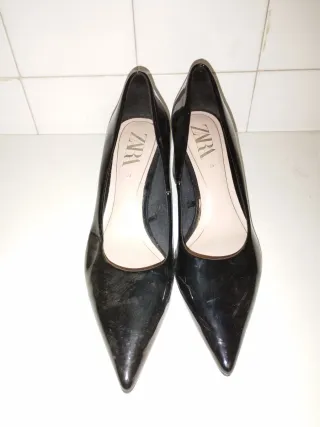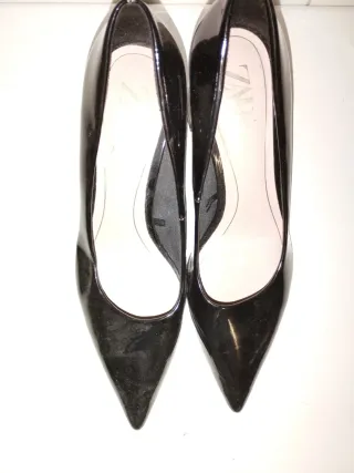 Elegantes zapatos de tacón de Zara. - Diseño de charol brillante.