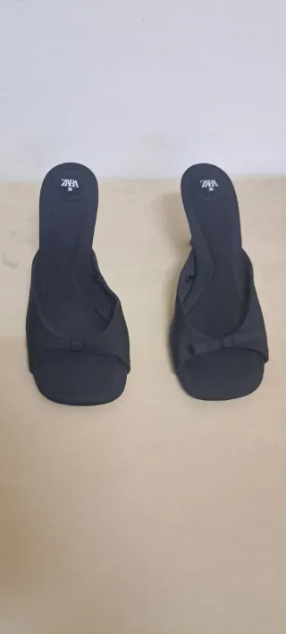 Elegantes zapatos mule de tacón de Zara. - Diseño destalonado. - Punta fina. - Tira delantera. - Talla 38