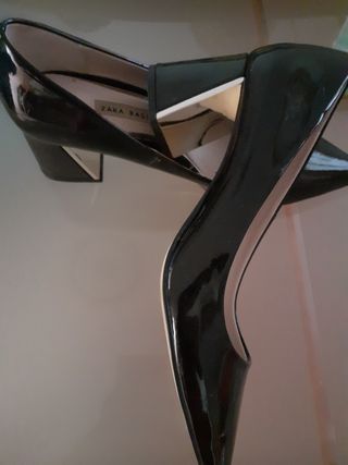 Zapatos negros de salón, comprados en Zara, usados una sola vez. Talla 39, muy nuevos. Los vendo porque me quedan grandes. Muy adecuados de fondo de armario.