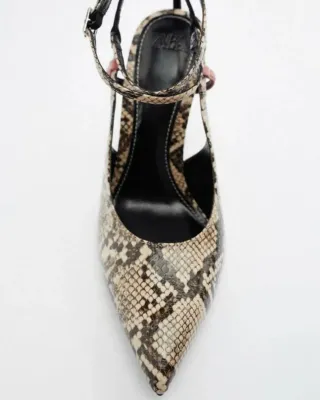 Elegantes tacones de Zara con un llamativo estampado de serpiente. - Diseño de punta fina. - Acabado texturizado.