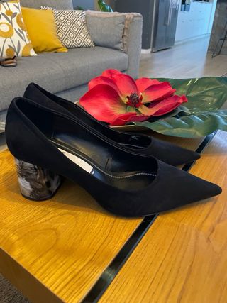 Elegantes zapatos de tacón, de salón, Zara, perfectos para ocasiones especiales. - Tacón de 7 cm. - Diseño de punta fina. - Material Ante.