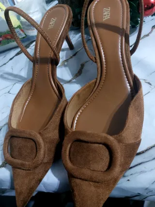 Elegantes zapatos de tacón de Zara. - Diseño de punta afilada. - Corte lateral. - Material de ante.