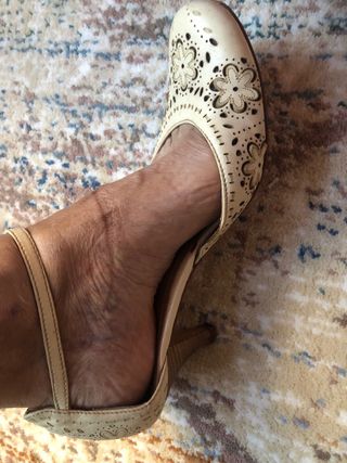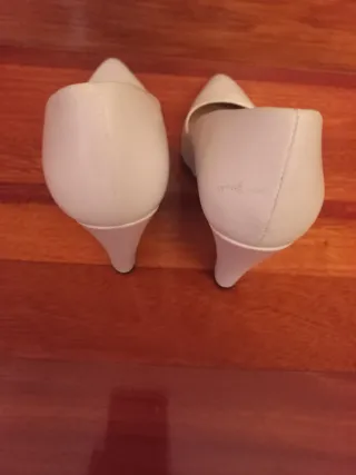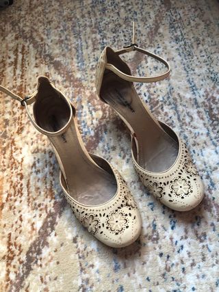 Zapato de mujer de color claro poco puestos atado en el tobillo cómodos Número 40. He puesto que la marca estará porque sino no me dejaba colgar el anuncio pero no es de Zara es una zapatería buena son de piel