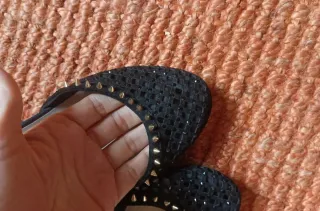 Zapatos salon de tacón con punta fina destalonados y con cuerdas para atarlos al tobillo, en color negro de Zara. Tejido y estan cubiertos de lentejuelas y abalorios pedrería. Talla 36 Altura Tacon: 8cm COMO NUEVOS, en su caja y con 1 solo uso de unas horas. Mango, H&M, Mango, Massimo Dutti, Stradivarius, Bershka, Topshop, Pull&Bear, Springfield, Uterque, Inditex...