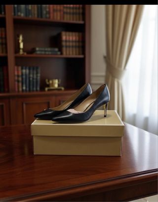 Elegantes zapatos de tacón de piel. - Diseño clásico y sofisticado. - Punta cuadrada con detalle brillante. - Tacón de altura media.