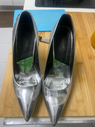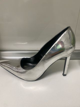 Zapatos tacón Zara plateados
