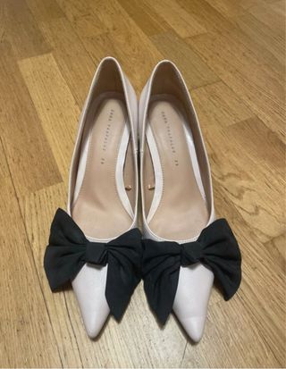 👠 Zapatos rosa palo con lazo negro – Zara 👠 Usados solo una vez, en perfecto estado. Elegantes y súper combinables. Perfectos para darle un toque especial a cualquier look. ¡Hazte con ellos y estrénalos como nuevos! ✨