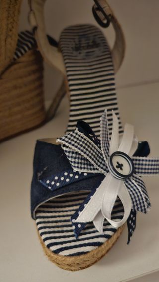 Se vende zapatos mujer azul prácticamente nuevos el tacon es efecto charol rojo brillante es talla 36