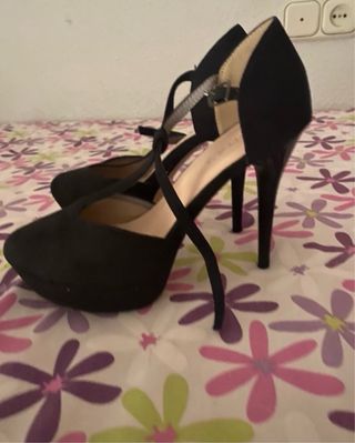 Zapatos de tacón usados de pocas veces pero algo estropeados en el aterciopelado de la plataforma. Es un tacón de unos 12cm de la talla 36