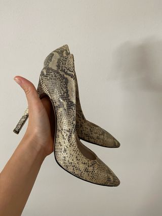 zapato de tacón con punta color negro y serpiente ( sin usar).