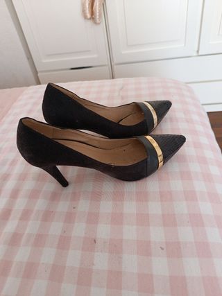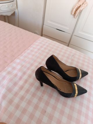 Se vende tacones de vestir. solo se a usado 2 veces están plásticamente nuevos,son una 38 pero son un poco más grandes,podría ser 39. Valian nuevos 30€. Cualquier duda podéis preguntar y más artículos en mi perfil