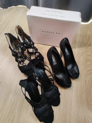 💵 Se venden en lote por 25€ o por pares a 10€ cada par 👠Lote de 3 pares de elegantes zapatos de tacón de las marcas 5th avenue (talla 40 en piel) PICCOLA PIU (nuevos a estrenar talla 40, tela cremallera trasera) y XTI (tela, talla 41) ❤️ Se han usado en un par de ocasiones, están en muy buen estado ‼️ Por el tipo de articulo, no se aceptan devoluciones ni reclamaciones, el comprador asume lo que adquiere en base a la descripción y las fotos 📦 Envío solo con Inpost ✖️ Tags zapatillas mujer señora joven moda boda pre-boda comunión bautizo cumpleaños eventos elegante vestido noche tacones falda chaqueta americana brasier